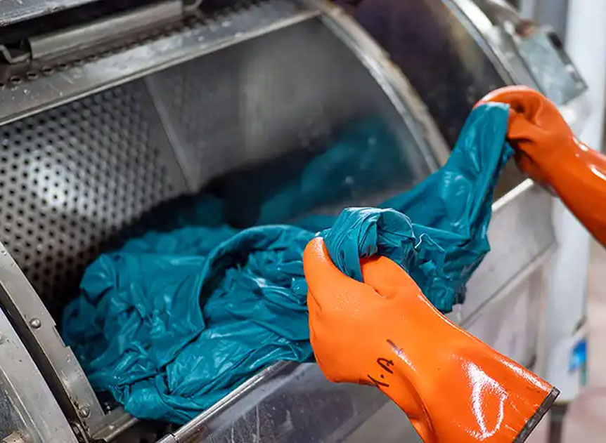 2. Dye the garment: The garment is dyed using a machine like a rotary drum or paddle machine.