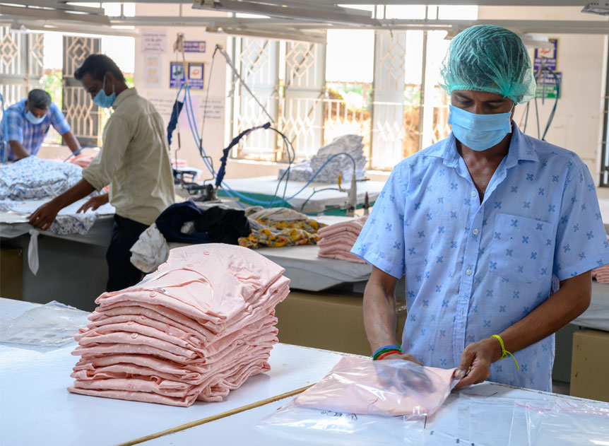 Automated ironing lines work in tandem to ensure smooth ironing of all the products. This line also serves as a final quality checkpoint before the products are packed.